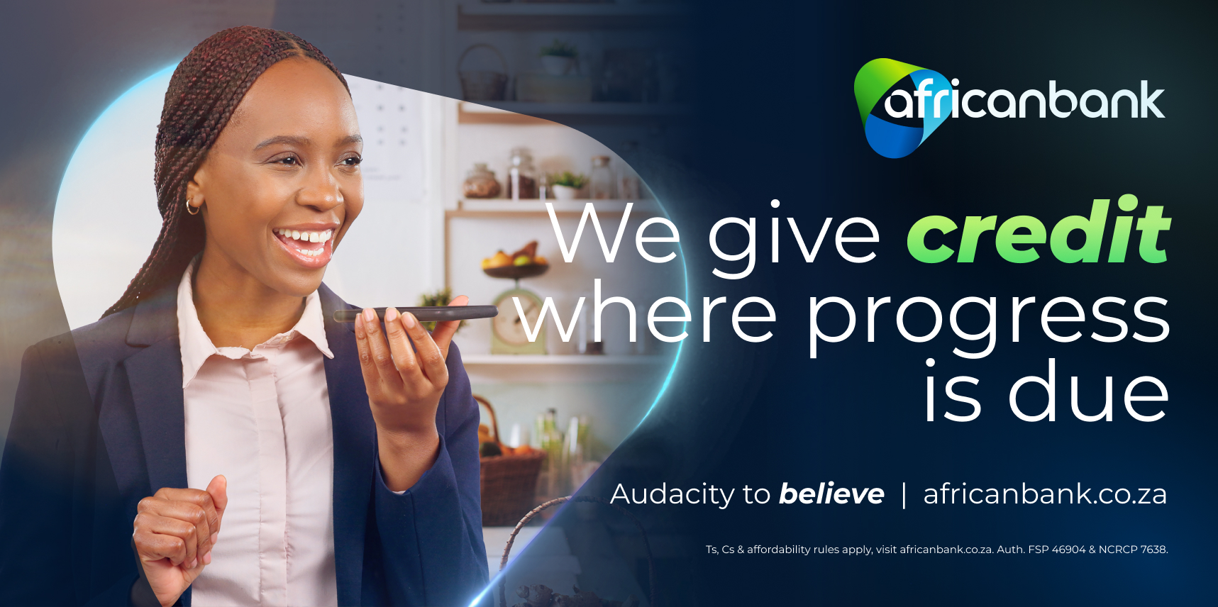 African Bank Limited 2014/176899/06 is an authorised Financial Services Provider (FSP46094) and registered Credit Provider (NCRCP7638). Ts and Cs apply. Subject to affordability assessment and approval.